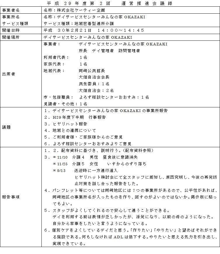 平成29年度第2回運営推進会議(岡崎)