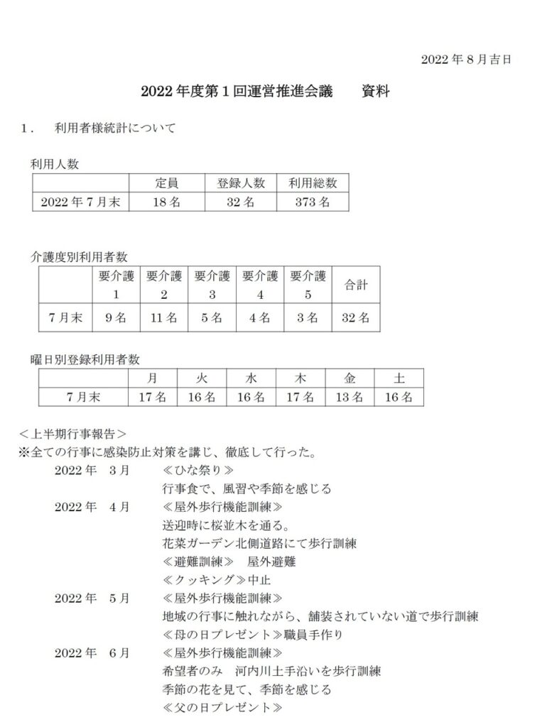 2022年度第1回運営推進会議書面報告(岡崎) 2022年8月20日 議事録 2022年度第1回運営推進会議 は、コロナ禍のため中止とさせていただきました。以下に、書面報告として掲示いたします。 2022年8月20日 一覧に戻る