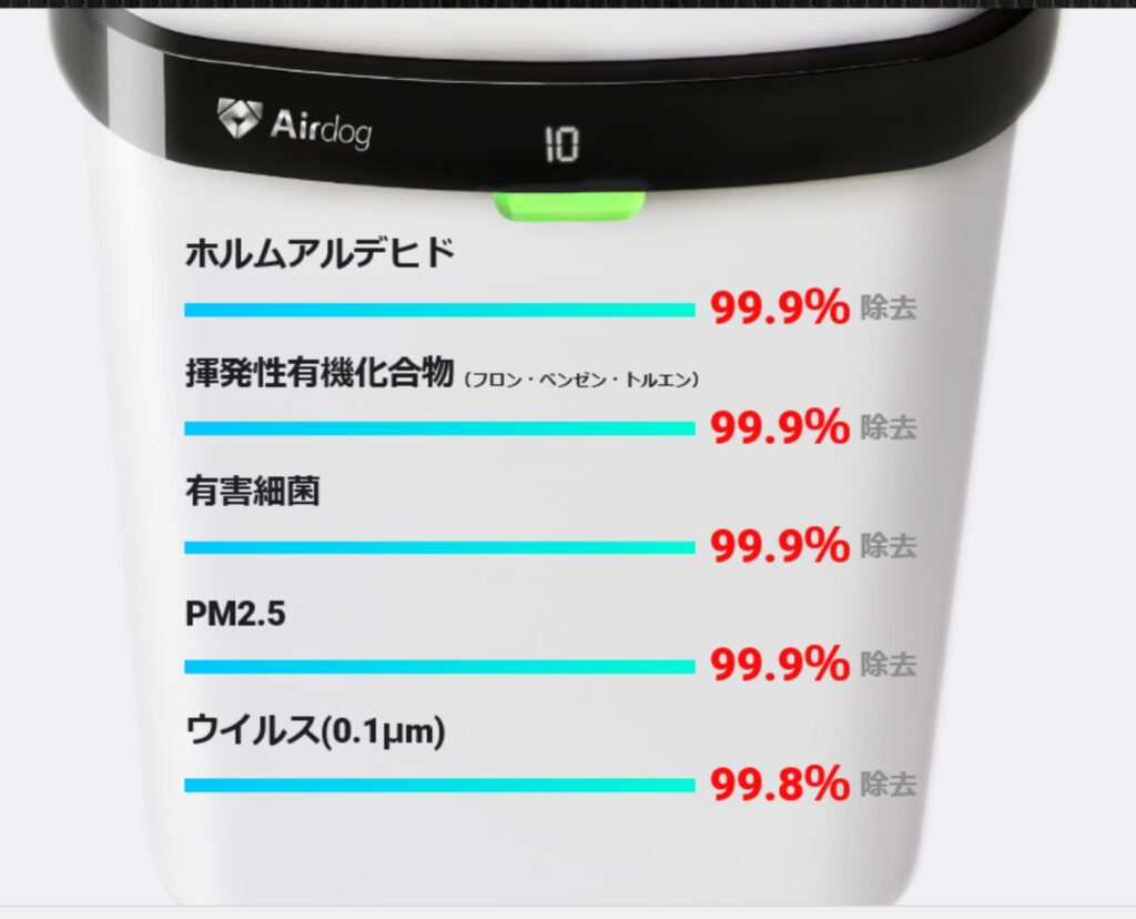 「Airdog」はインフルエンザウイルスの0.1μmよりも