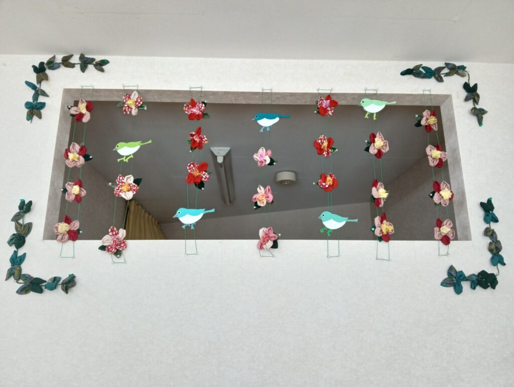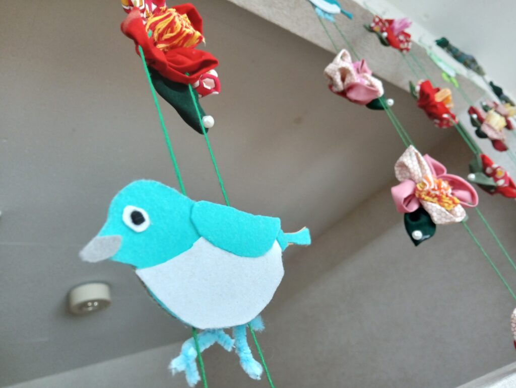「椿とメジロ」のモビールです