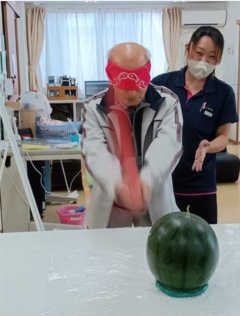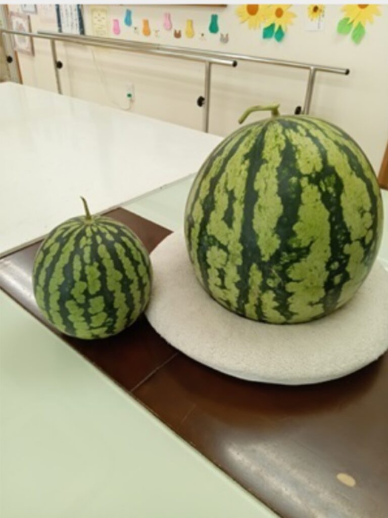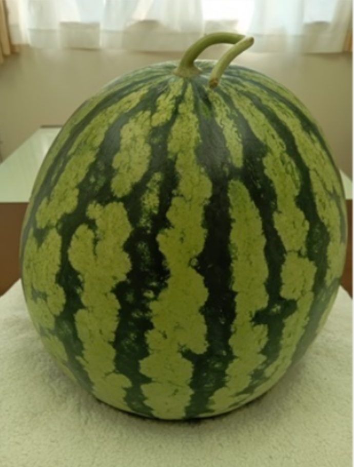 正解は、1つ目のラグビーボール型スイカが12㎏
