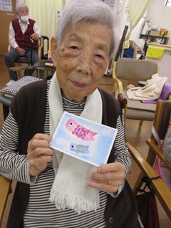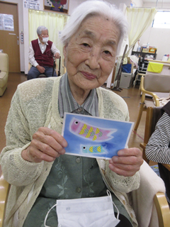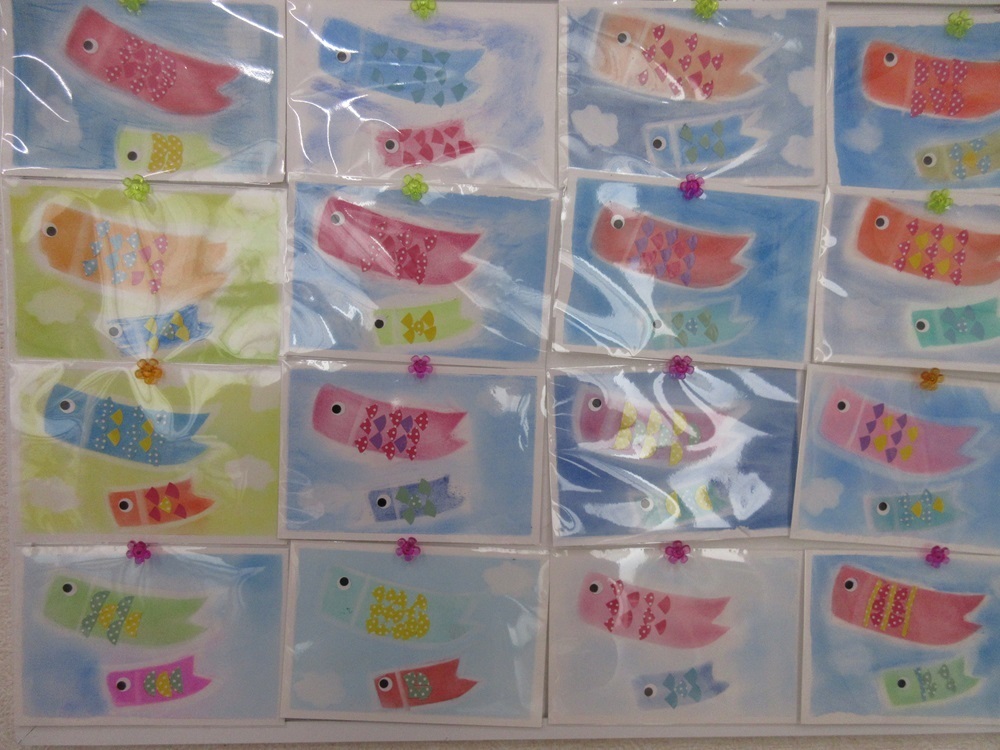 各々考えて、こいのぼりの色を選択・着色し、うろこの部分は集中してシールを貼り付けていただきました