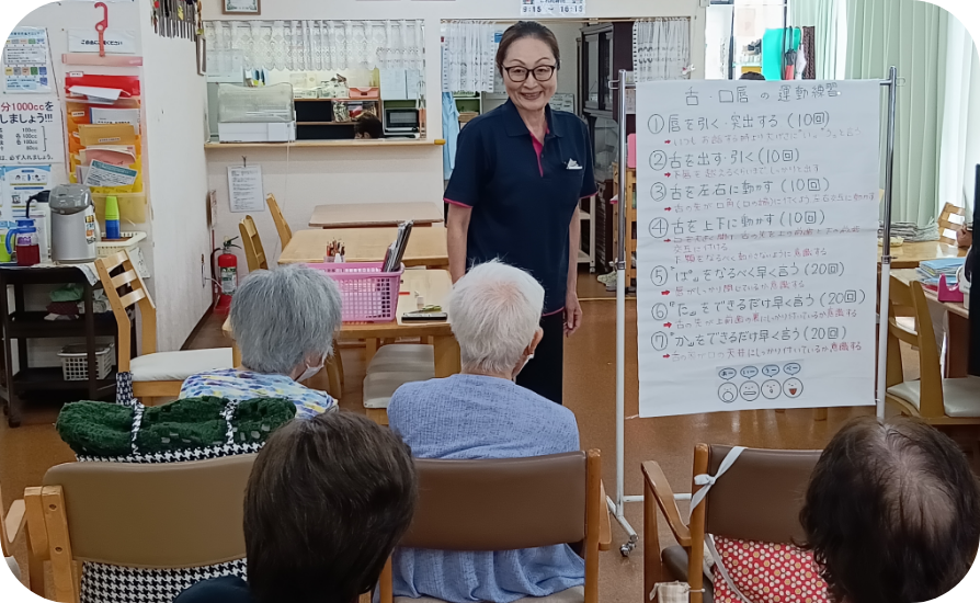 食事が美味しく召し上がれるように、毎日「お口の体操」を行なっています。