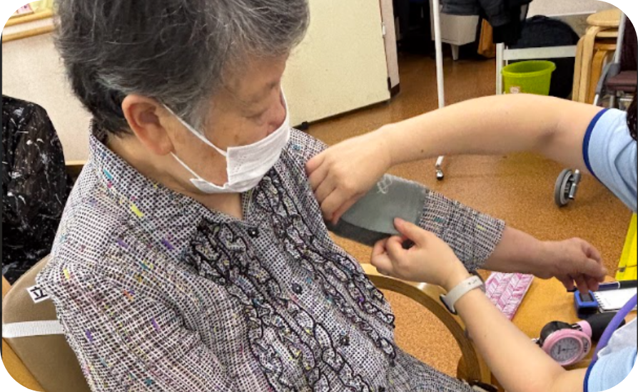 ウェルカムドリンクと健康チェック(体温・血圧・脈拍など)